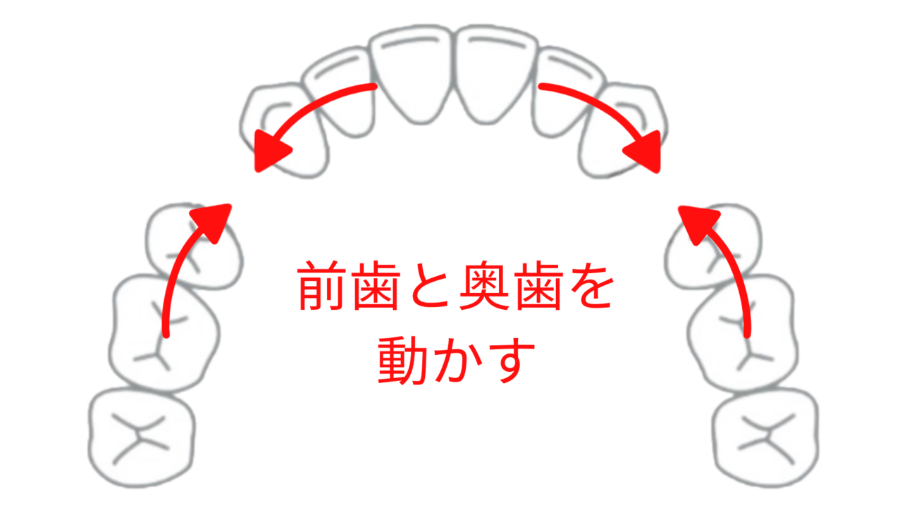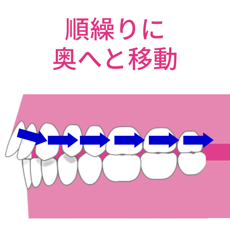 それにより空いたスペースに次の奥歯を動かし、さらに次の奥歯を動かします。