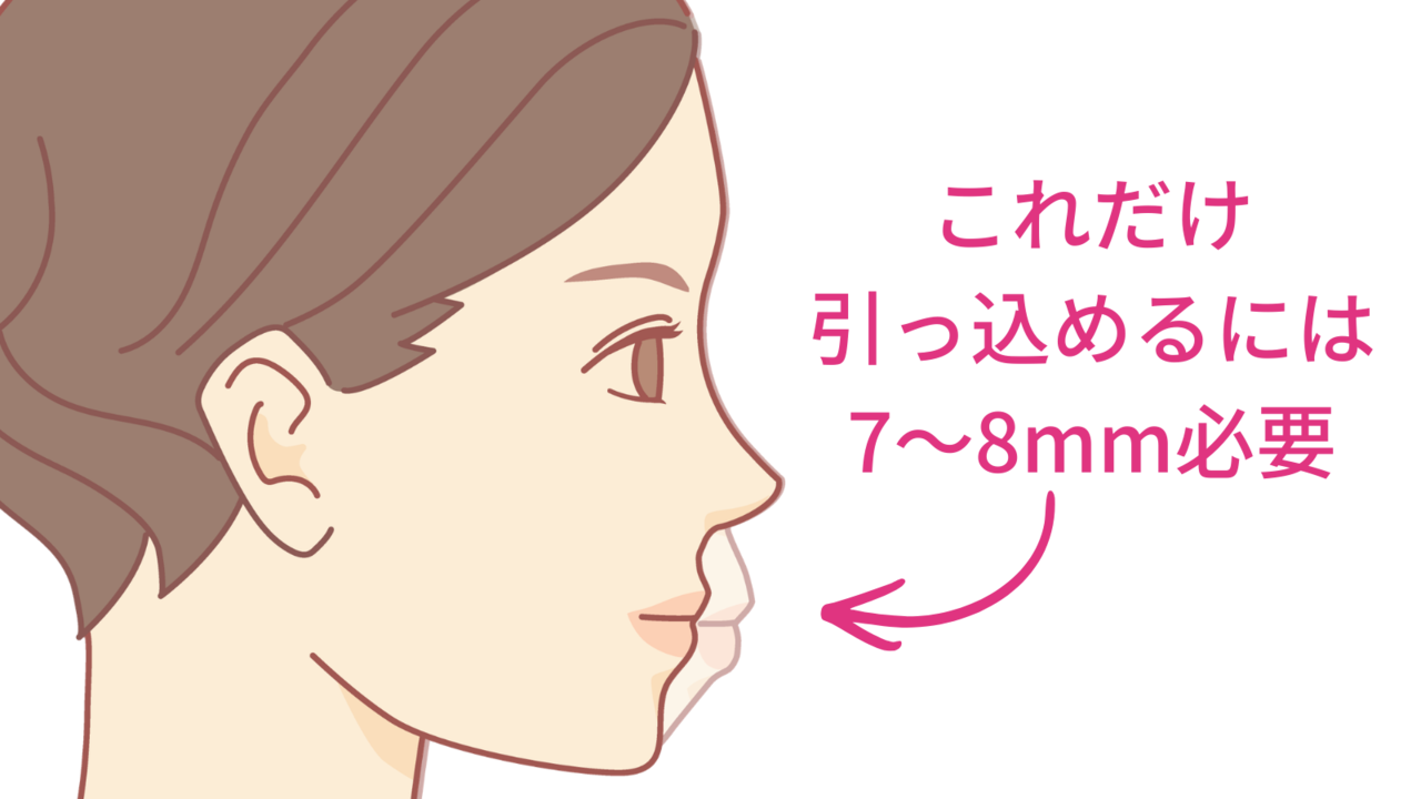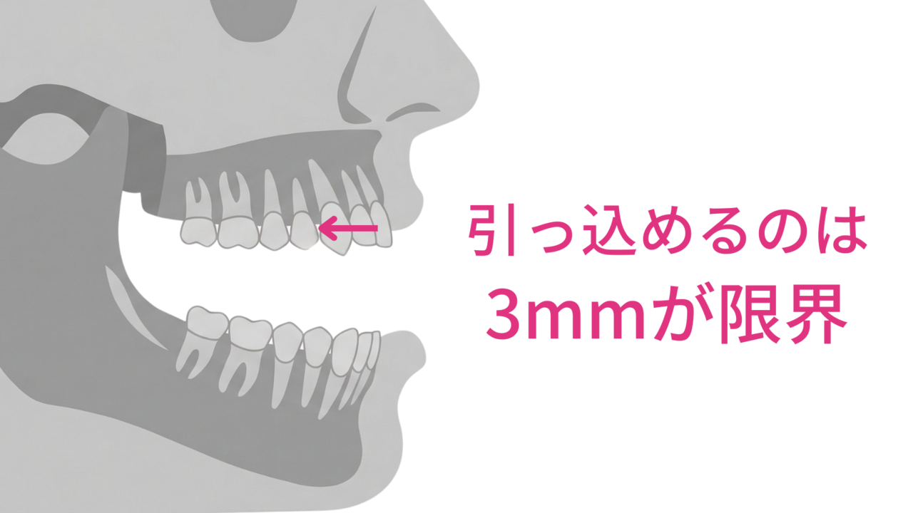 最低でも4〜5mm、重度なら7〜8mm必要なのに、3mmしか引っ込められない。結果、治療を終えても出っ歯が残ったまま。「矯正したのに変わらなかった」という失敗が起きます。