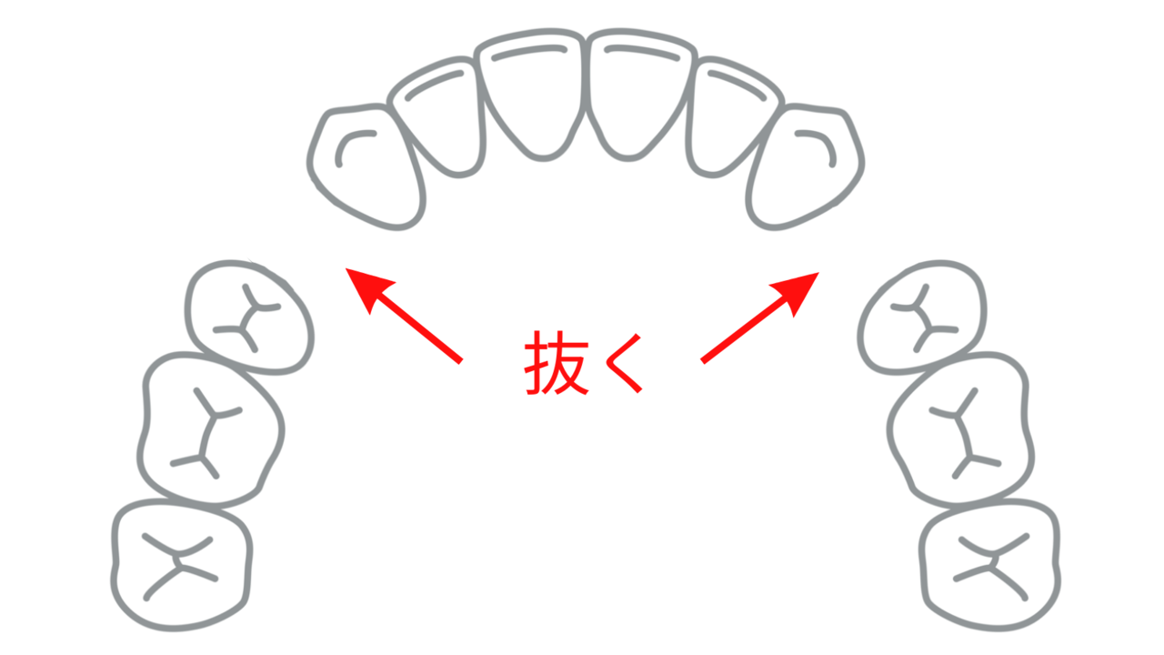 具体的には前から4番目の歯を抜いて、前歯を並べるスペースを生み出します。
