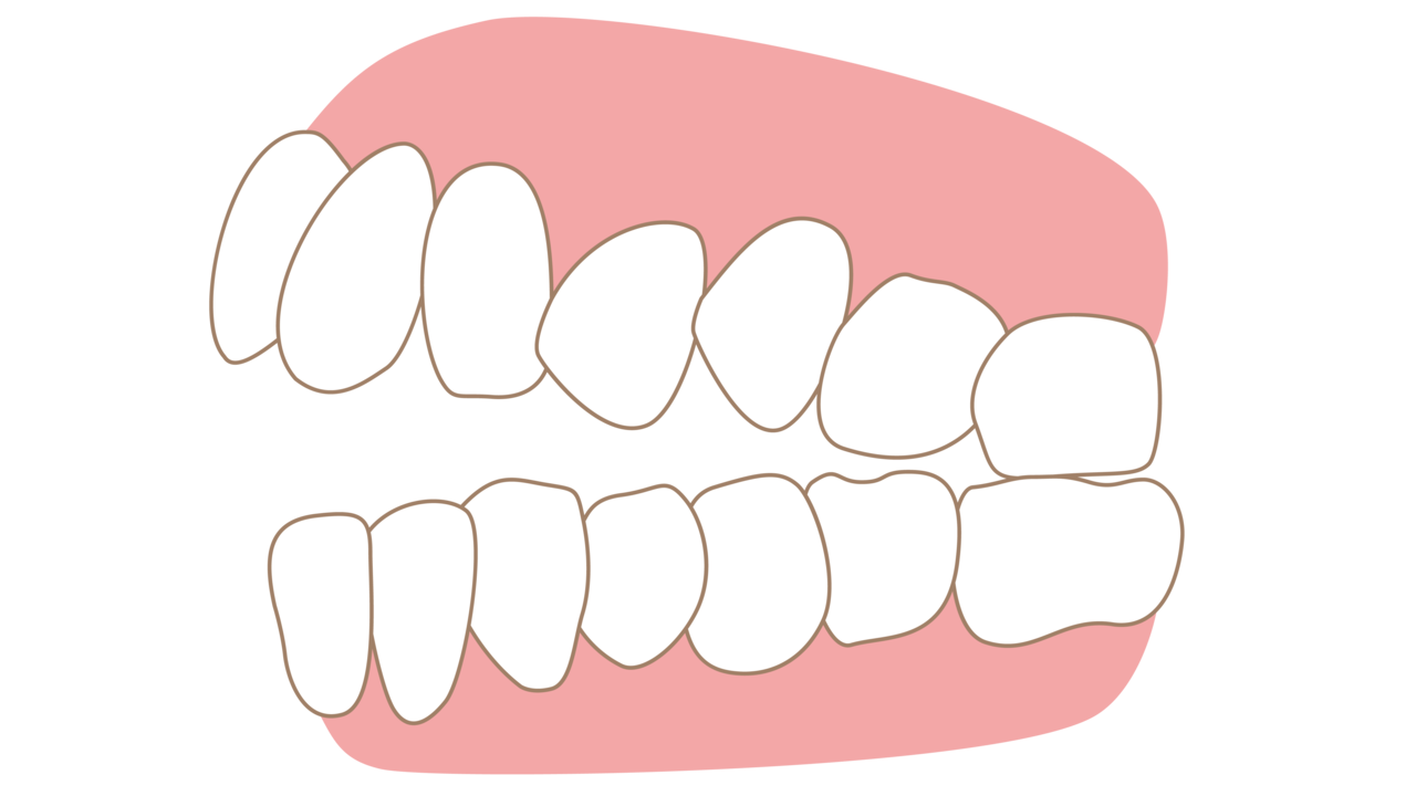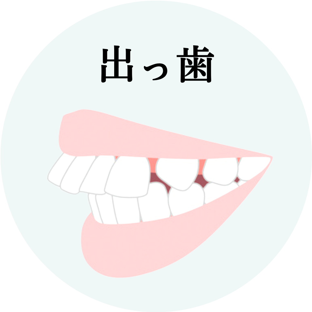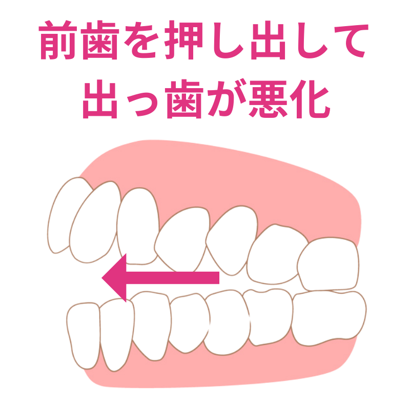 無理矢理、狭いスペースに歯を並べるため、前歯が前方に押し出されて出っ歯になってしまうのです。