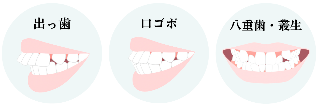 また、上だけでなく下の前歯も飛び出した口ゴボや、歯がガタガタの叢生(乱杭歯)、八重歯を併発している患者さまも少なくありませんが、こうした症状も出っ歯の矯正で治せます。